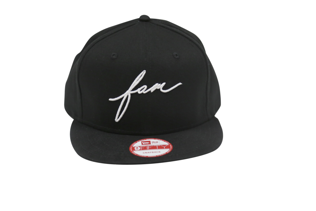 - 3D raised embroidered script Fam logo on front